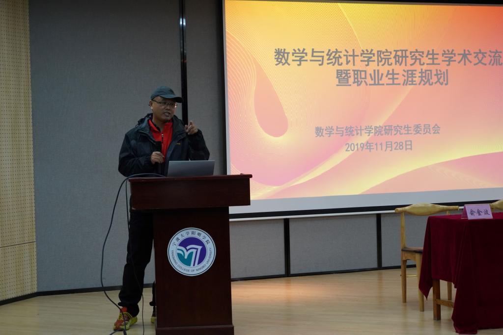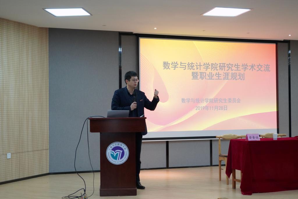 在9号楼116报告厅举办研究生学术交流暨职业生涯规划沙龙活动。活动特邀数学学院院长屈长征、党委书记俞金波作为嘉宾与现场70多名研究生交流。活动由副院长曹炜主持。