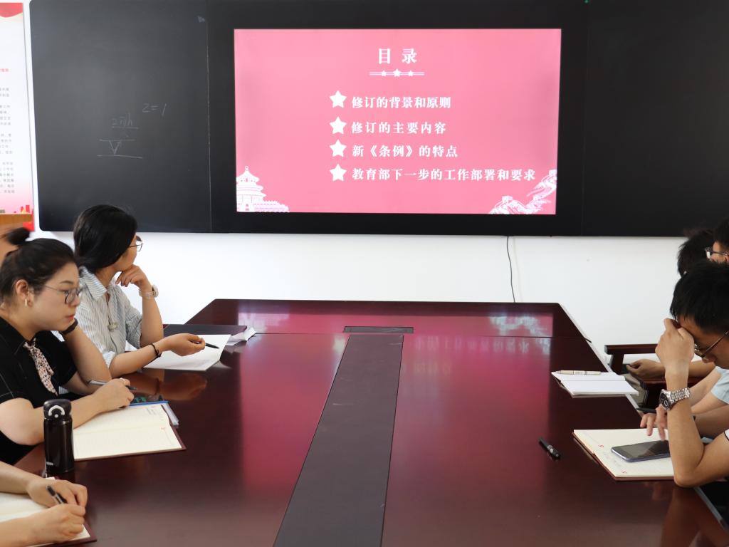 张老师首先介绍了《条例》修订的背景、过程、意义及遵循的主要原则。他表示《条例》以习近平新时代中国特色社会主义思想为指导,对高校基层党组织工作作出全面规范,为全面加强新时代高校党的建设提供了基本遵循。为了更好地学习《条例》,张老师通过将2021年版《条例》与2010年版逐条对比的方式,重点解读《条例》中的重要修订内容。他表示,数学学院党委将结合党史学习教育,进一步认真组织学习贯彻《条例》精神,全面掌握《条例》内容,严格遵守和执行《条例》规定,全面加强党的建设,坚守为党育人、为国育才,推动数学学院各项事业发展更上一个新的台阶。