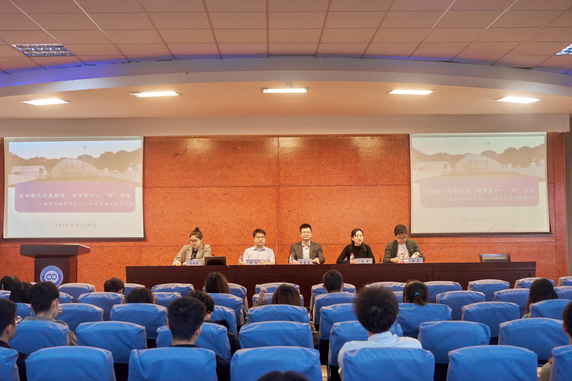 4月29日,学院组织召开“五四薪火你我相传,逐梦前行一‘研’为定”2019级学生考研动员大会。学院党委书记俞金波、党委副书记姜萍、副院长徐松、学工办主任张宾、团委书记陈佳雯出席会议,2019级全体本科生参加本次大会。