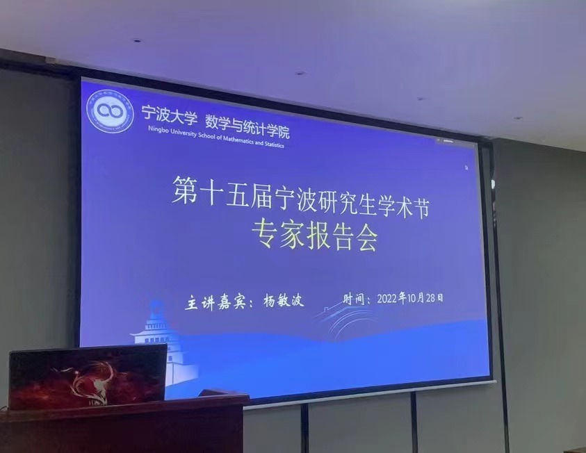10月28日,由我院承办的第十五届宁波研究生学术节专家报告会在9号楼113报告厅成功举办。报告会特邀浙江师范大学杨敏波教授作为主讲人,学院特聘院长屈长征教授、副院长胡良根教授出席报告会,学院全体研究生同学参加报告会。报告会向同学们讲述了数学问题的发展史,充分的展现了数学的魅力。