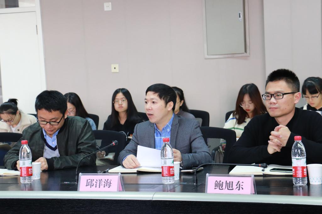 首先,浙师大数学与计算机科学学院学工办主任邱洋海老师介绍了他们在团组织建设,学科建设,学风建设,创新创业建设等方面的改革举措,并指出学生工作需要围绕学院发展来开展,要敢于打破传统壁垒、勇于改革创新,强调立德树人,狠抓学生干部作风。接着,两院团学干部代表分别介绍了各自组织的特色活动,宁大数院师生借此机会,看到了自身存在的不足,也了解到了自己的优势。