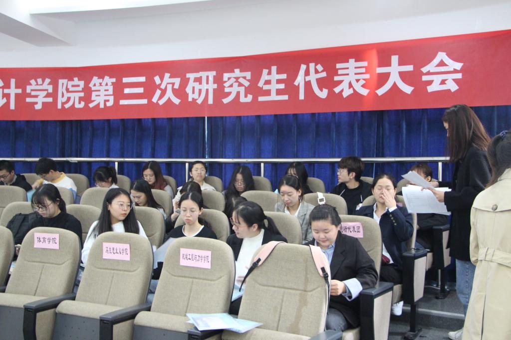 第三次研究生代表大会在包玉书9号楼113报告厅隆重召开。学院党委副书记姜萍、学工办主任张宾、研究生秘书金千愉、校研会代表王睿琦和各兄弟学院的代表们莅临会议,92名研究生代表参加本次会议。