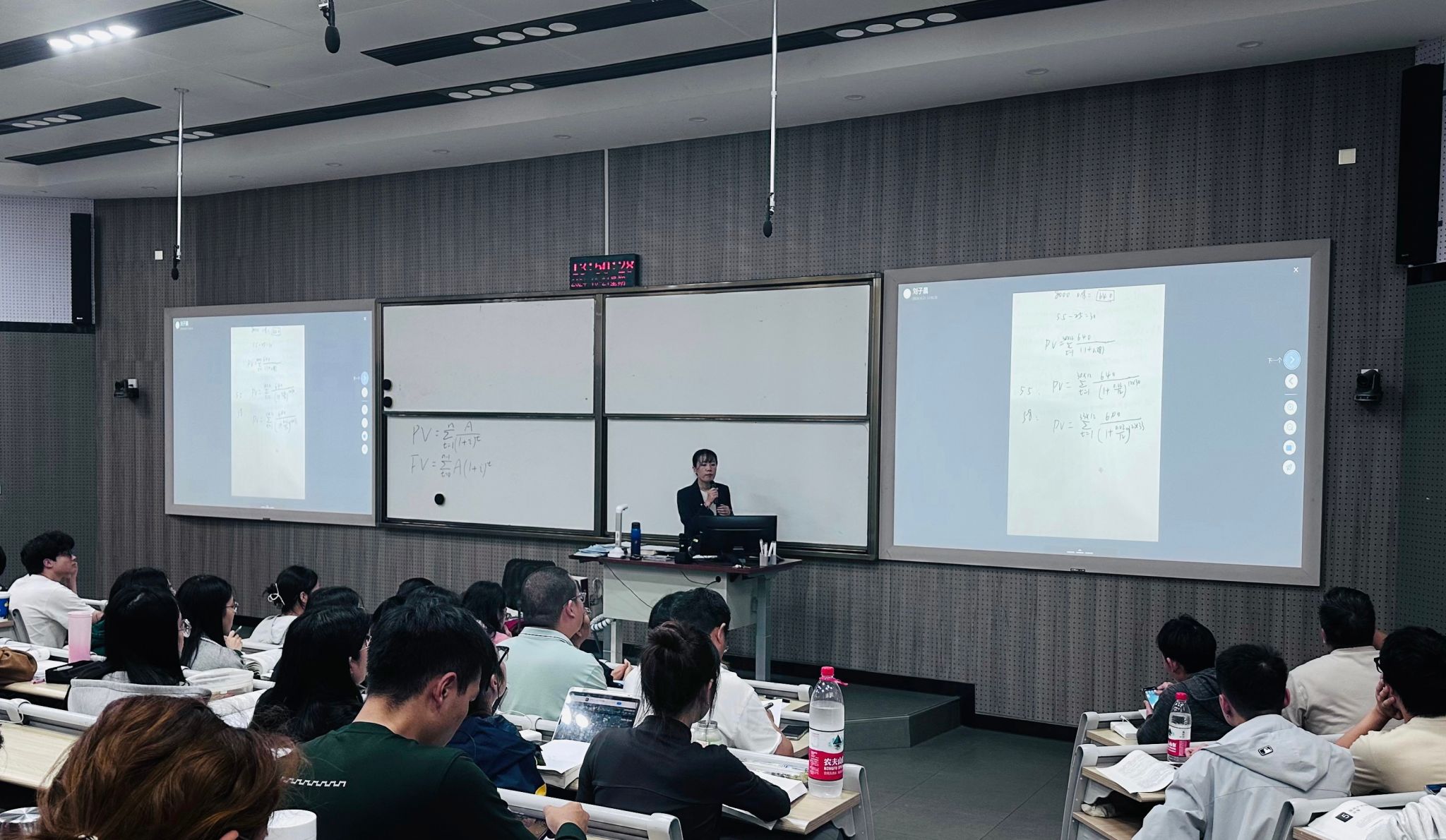 课后,学院本科教学督导组组长乐瑞君老师主持研讨。听课老师们表示,赵老师以养老金为例,在专业课程中自然地融入思政元素,课程内容与时俱进,雨课堂等智慧教育工具运用娴熟,值得学习推广。