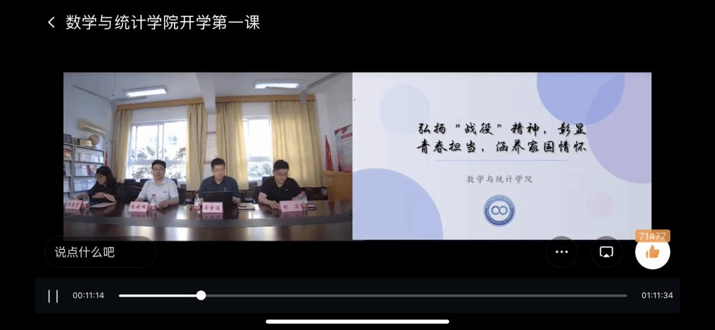 在互动环节,同学们纷纷向王院长提出了如何疏导恐慌情绪、克服最大挑战等方面的问题。王院长结合自身切实感受和相关经历做出了耐心的解答,让师生们对一线医务工作者的辛苦与奉献更加肃然起敬。直播结束时,突破7万的点赞量持续攀升。这堂特殊的开学第一课,让数院全体师生感受到了医护人员勇敢担当的“战役”精神,激发了青年的责任担当,涵养了师生与国家同心同向的家国情怀。