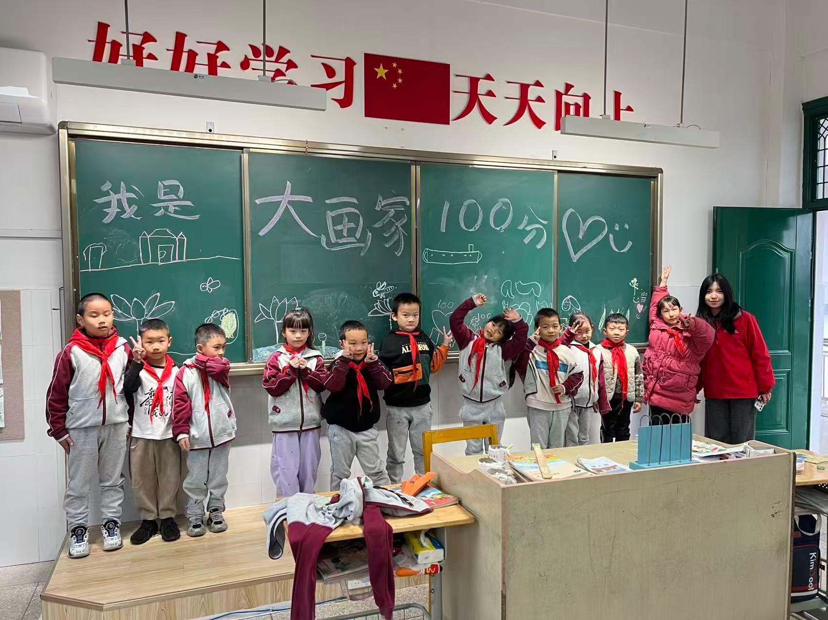 11 月 9 日至11月16日,首批支教老师孔梦莹、曾志婷、毛晓祎率先抵达长安学校,恰逢学校运动会举办,三位老师迅速融入校园氛围,既担任裁判助力赛事有序开展,又主动带领学生热身、为参赛选手呐喊助威,成为运动场上一道活力满满的风景线;运动会之余,特色课程同步推进,晨迎环节中,老师们每日清晨7点便伫立在寒风中,用温暖的笑容和亲切的问候迎接学生入校,让孩子们在冬日里感受到别样的关怀,美术课上 “画我的家乡长安”“绘制心情瓶”“黑板接力画” 分别让孩子们勾勒家乡美景、学会表达情绪、培养团队协作能力,音乐课上经典越剧选段的教唱让传统文化在童声中传承,扭扭棒手工课上,一双双小手灵动翻飞,制作出承载创意与喜悦的精致郁金香。