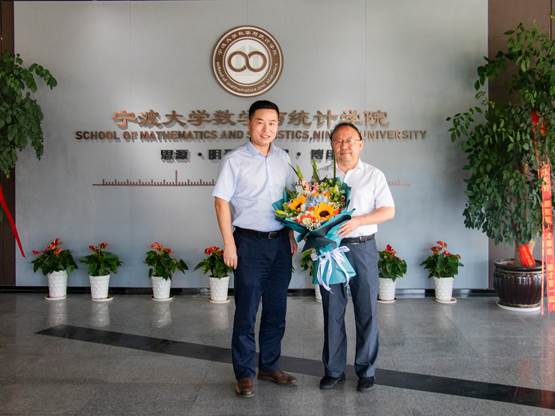 在此教师节来临之际,毛才盛为屈教授献上了鲜花,送上了节日问候,并进行了亲切座谈。在听取了屈教授关于数学学科师资队伍、科学研究、人才培养等介绍后,毛长盛充分肯定了学科取得的成绩,并表示近年来习近平总书记多次强调加强基础学科建设,作为教育基石的数学学科一定要抓住此次机遇,加强内涵式发展,提升迭代升级能力。最后双方就“面向中小学开展夏令营、承接中小学师资培训、成立宁波数学应用中心”的可能性进行了探讨,以期多维度提升学科平台,更好服务地方经济与社会。