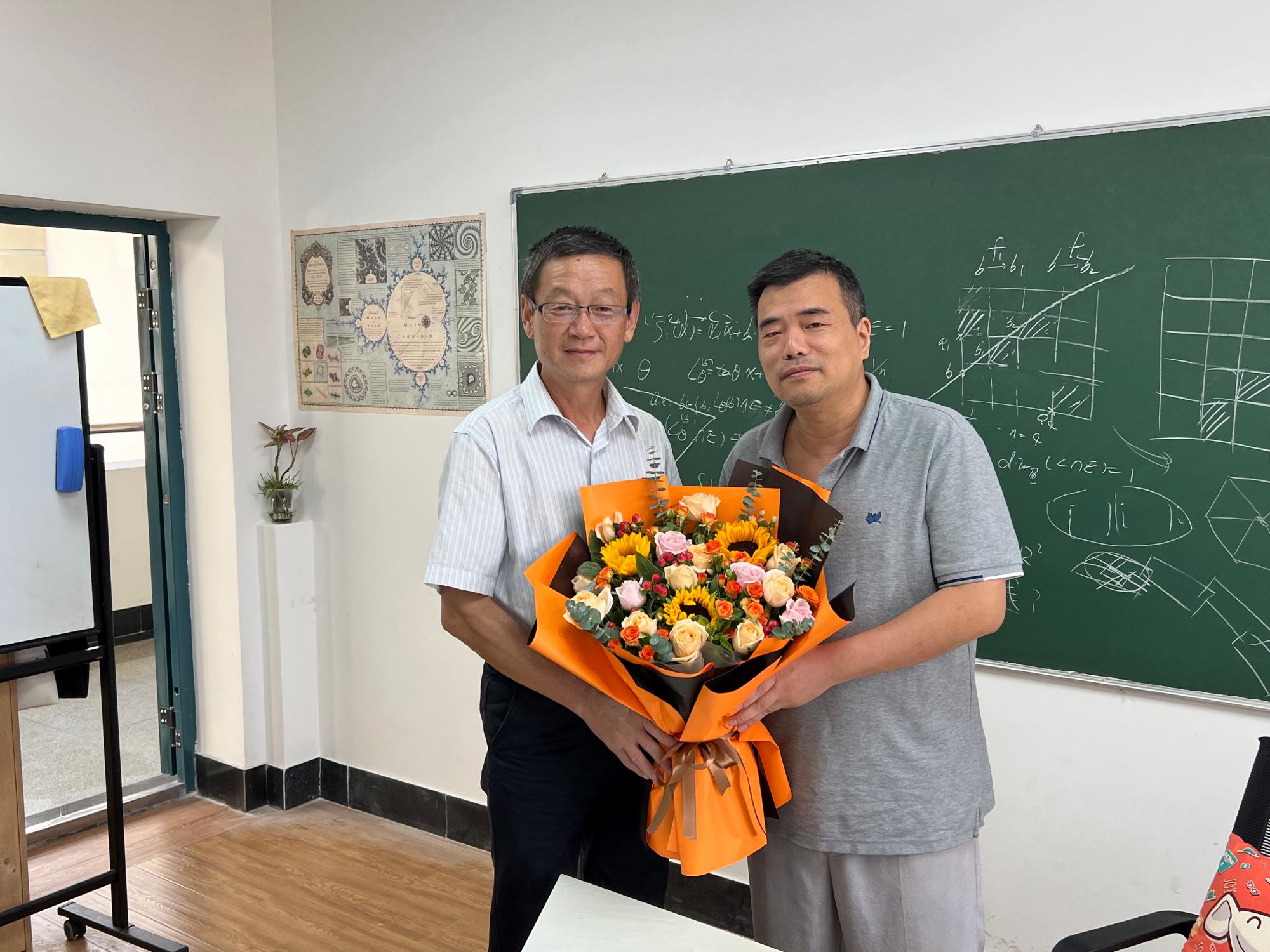 正值教师节来临之际,9月8日上午,校党委副书记冯杰到我院看望奚李峰教授,并致以节日的祝贺和诚挚的慰问。冯书记向奚教授认真询问了目前数学相关课程的开展情况,详细了解了当前课程发展的难点和阻碍。他对奚教授长期以来默默耕耘,倾情奉献,为学校学科建设和科研实力增强所作出的突出贡献表示衷心的感谢。同时,他希望奚教授在未来继续关注学校的发展,同时继续为数学学科建设贡献力量。
