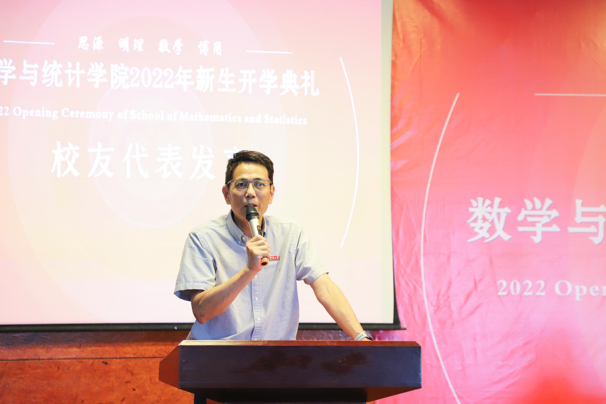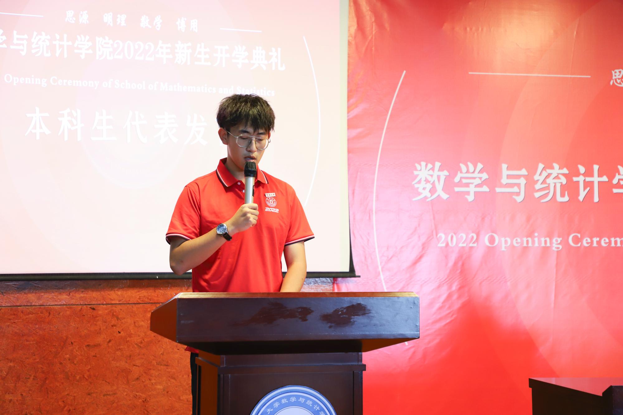 接着教师代表何洪津教授以自己的学习经历为例,从“感恩、坚持、学习、健康”四个方面讲述了数学带给他的乐趣,也希望新生们能够享受学习数学的过程。随后,刚在6月份加入数院大家庭的Matteo Casati博士进行发言,他怀着追求共同进步和深入学术研究的期待,在构建学校国际交流合作新格局的政策方针下,对同学们提出“及时尽自己所能地完成任务”,“和朋友们一起学习”以及“学会教别人学习”的三个学习建议。