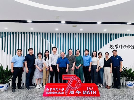 特聘院长、院党委书记一行7人赴南京师范大学数学科学学院调研交流,学习兄弟院校成功经验。数学科学学院院长汪艳秋、院党委书记徐剑波、副书记喻华杰、副院长周海燕、副院长王锋等接待了调研组一行。