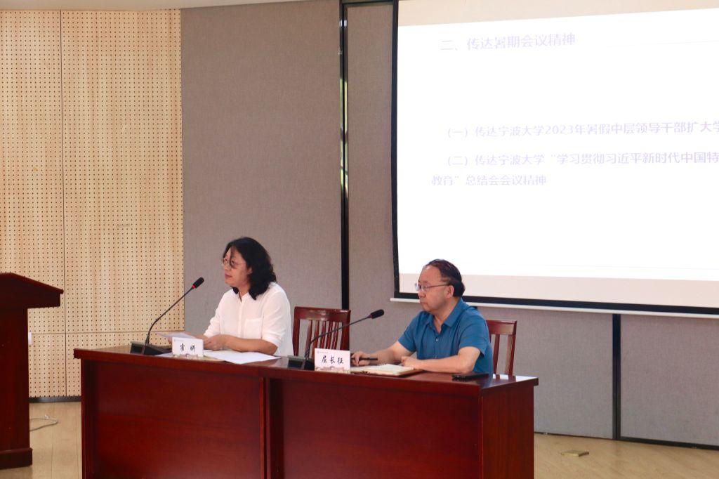 2023年暑假中层干部扩大学习会精神,重点分享了朱达、蔡荣根分别关于《坚持以学科为牵引 推进高水平大学建设》《对标对表抓落实 全力巩固高质量发展良好态势》的讲话;紧扣“学思想、强党性、重实践、建新功”总要求,传达了咪咪爱