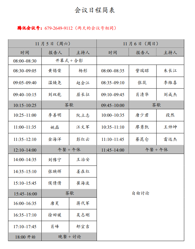 会议议程简表如下: