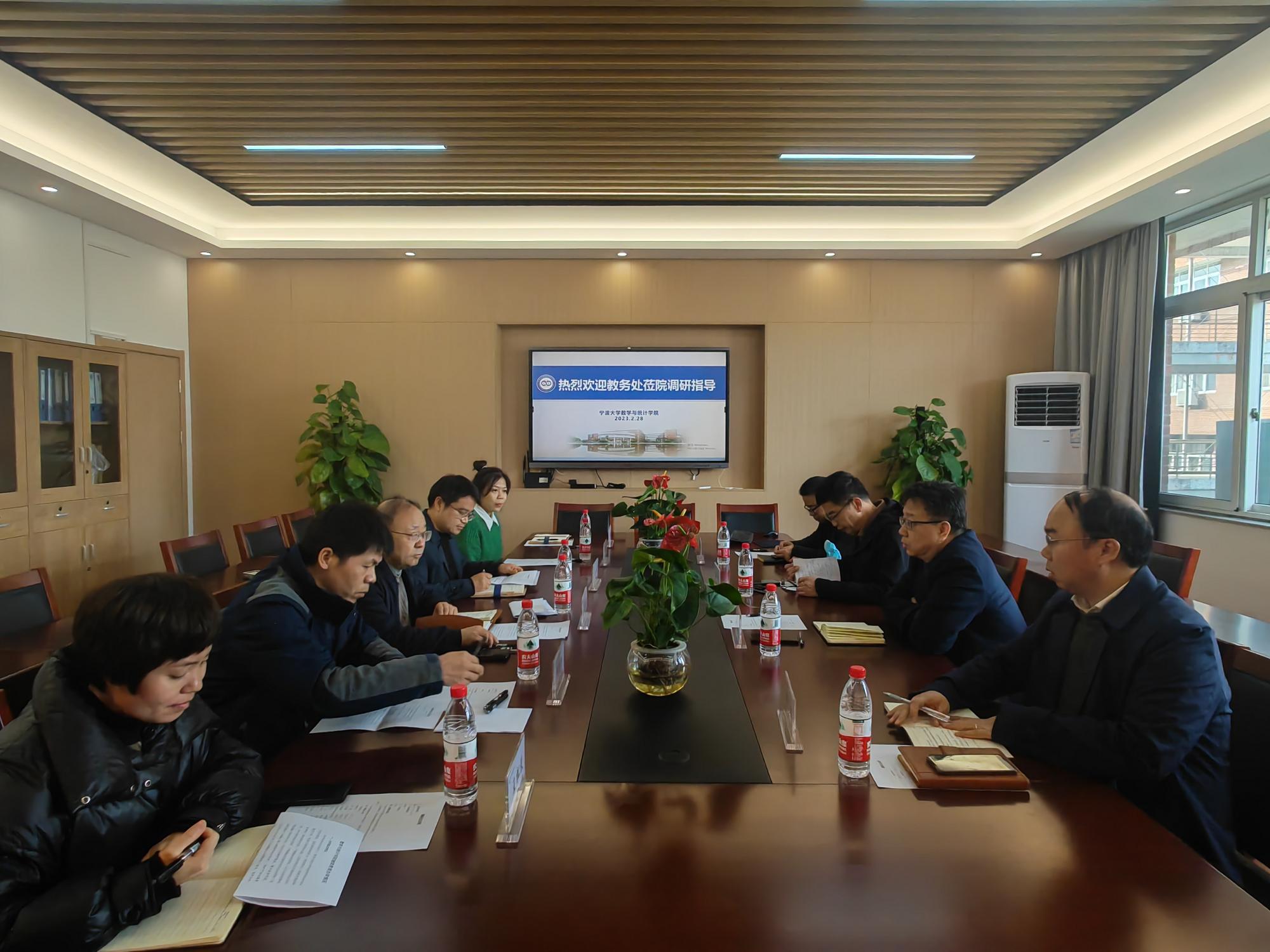 On February 28, 2023, a delegation of Li Guoping, Director of the Academic Affairs Office of Ningbo University, and Lin Bo, Hu Lianggen, Zhou Gangyi, Deputy Director of the Office, visited the School to investigate and exchange undergraduate teaching and continuous education. Xu Song, Associate Dean of the School, presided over the meeting, and Qu Changzheng, Distinguished Dean, He Hongjin, Assistant Dean, Shen Yan and He Weiting from the Schools Academic Affairs Office, and Wang Songbo, Secretary of the Office of Continuous Education and Local Services, attended the meeting.