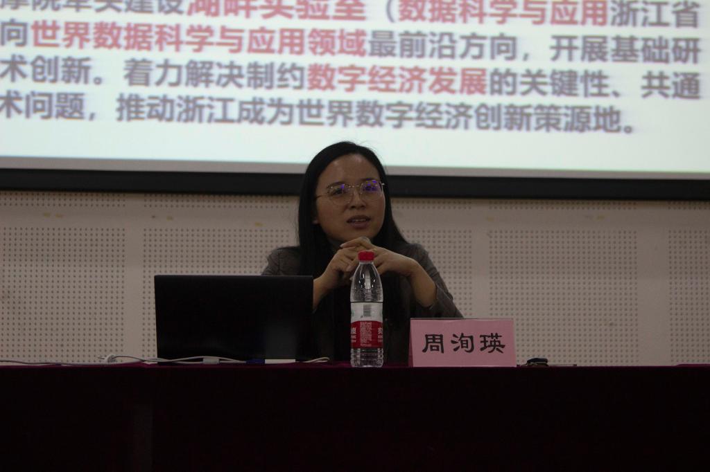 要展望未来,必先立足现在。所以周老师接着介绍了浙江现今的五大标志性成果:第一个是打造学习、宣传、实践习近平新时代中国特色社会主义思想的重要阵地;第二个是再创民营经济高质量发展的新辉煌;第三个是建设成为全球先进制造业基地;第四个是做优做强数字经济、生命健康、新材料等战略性新兴产业、未来产业;最后一个是建设高素质强大人才队伍、打造高水平创新型省份。最后,周老师提出,希望同学们可以做好宣传工作,学会口口相传,让更多的人爱上浙江,留在浙江,为建设浙江高质量高水平发展的巍峨大厦添砖加瓦。
