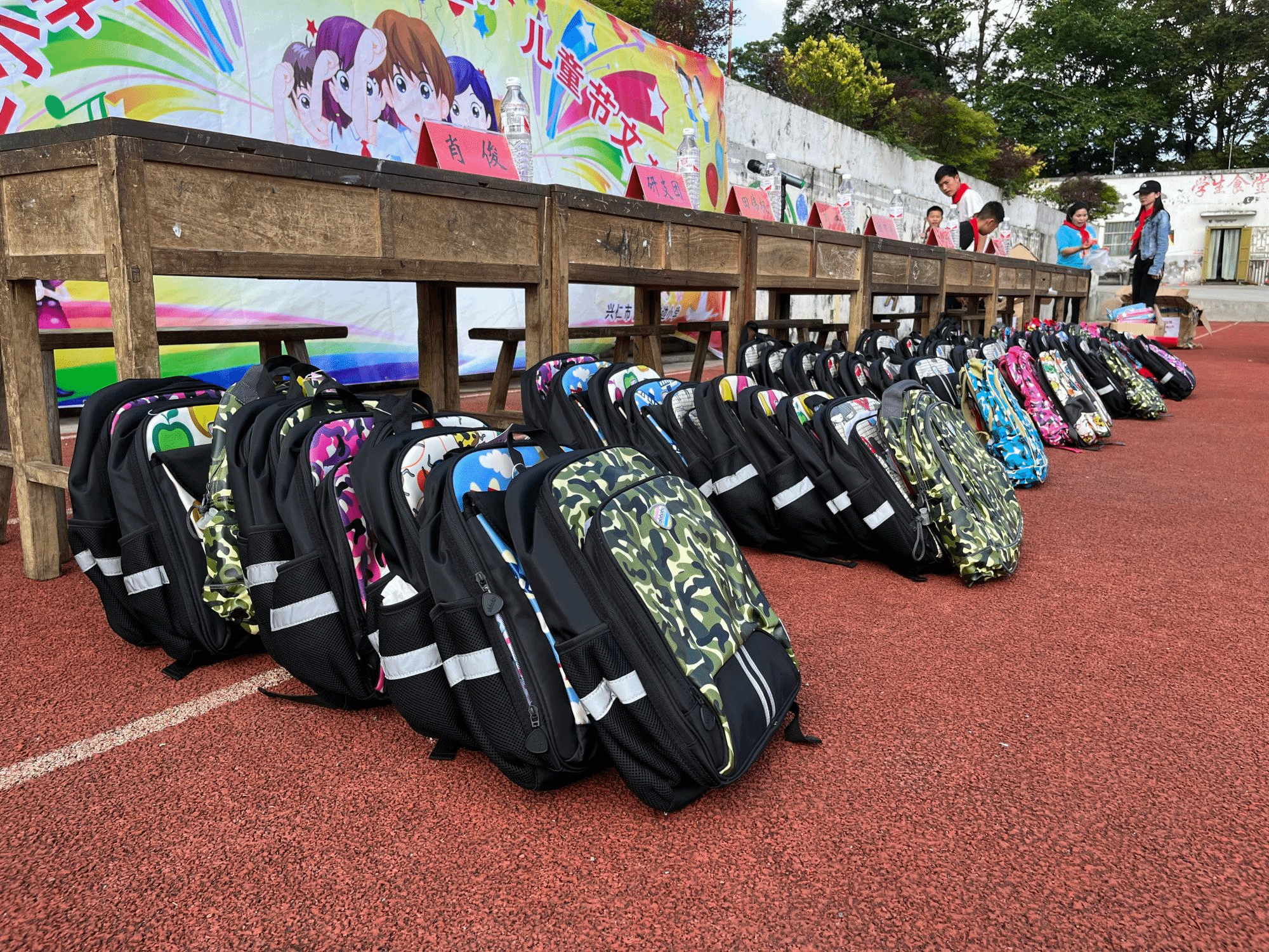 校友严正捐赠的100个书包分别前往贵州省兴仁市百德镇围塘小学和沟边小学,为孩子们送上祝福和礼物,以实际行动传递对儿童的关爱。
