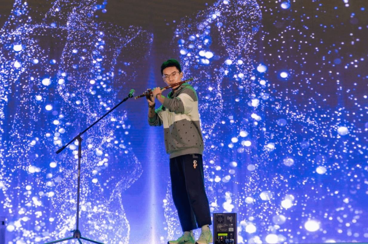 音乐会伊使,华韵汉文化协会带来的古典舞《金陵十三钗》引得满堂喝彩,曲风优美,故事凄然,舞姿动人,将全场的气氛推至高潮。随后迎来风华艺术团的《飞云之下》三人合唱,三位歌手的配合默契、唱技绝妙、嗓音动听,更是让观众如痴如醉。个人表演笛子独奏《牧民新歌》完美地刻画出了草原牧马的洒脱不羁,旋律直击人心,给在场观众带来一场充满青春的视听盛宴。