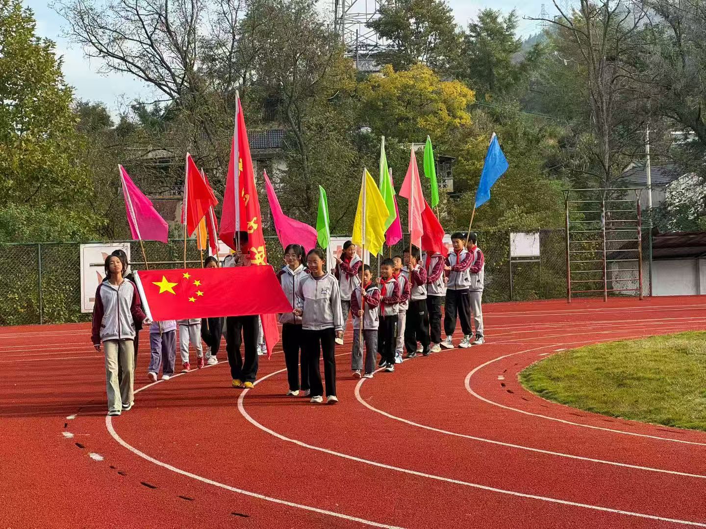 11 月 9 日至11月16日,首批支教老师孔梦莹、曾志婷、毛晓祎率先抵达长安学校,恰逢学校运动会举办,三位老师迅速融入校园氛围,既担任裁判助力赛事有序开展,又主动带领学生热身、为参赛选手呐喊助威,成为运动场上一道活力满满的风景线;运动会之余,特色课程同步推进,晨迎环节中,老师们每日清晨7点便伫立在寒风中,用温暖的笑容和亲切的问候迎接学生入校,让孩子们在冬日里感受到别样的关怀,美术课上 “画我的家乡长安”“绘制心情瓶”“黑板接力画” 分别让孩子们勾勒家乡美景、学会表达情绪、培养团队协作能力,音乐课上经典越剧选段的教唱让传统文化在童声中传承,扭扭棒手工课上,一双双小手灵动翻飞,制作出承载创意与喜悦的精致郁金香。