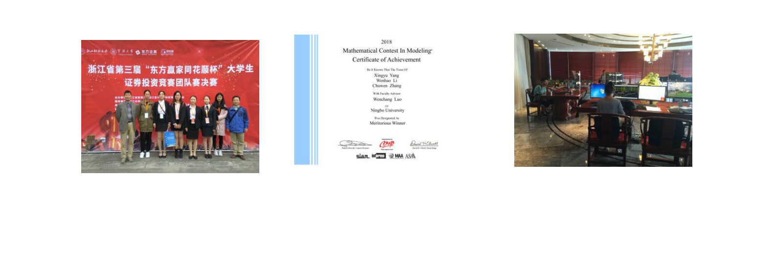 Excellent student cultivation quality: Financial engineering students won the gold medal in the 2016 Youth National College Student Entrepreneurship Competition, the 2016 Challenge Cup College Student Entrepreneurship Planning Competition, and silver medal in the 2016 China "Internet +" National College Student Entrepreneurship Competition, the gold medal in 2020 China "Internet +" National College Student Entrepreneurship Competition. In the past two years, the students won 1 national first prize and 3 second prizes in the National College Student Mathematical Contest in Modeling, and second prize in the American College Student Mathematical Contest in Modeling. In addition, many financial engineering students participated in the Zhejiang’s university Student Securities Investment Contest and the Zhongjin Cup Futures Knowledge Contest, and all achieved good results.