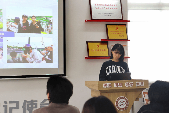 球场之外,霍皑的学业同样成绩斐然,连续两年荣获浙江省政府奖学金,并获得校级优秀大学生称号,实现了体育与学业的双轨共进。分享会上,她生动讲述自己的经历:从重拾热爱的决心,到训练比赛中的坚持,再到面对挫折的不放弃,每一个故事都深深感染着在场同学。她鼓励大家勇敢追寻内心热爱,以坚定信念和不懈努力跨越困难。