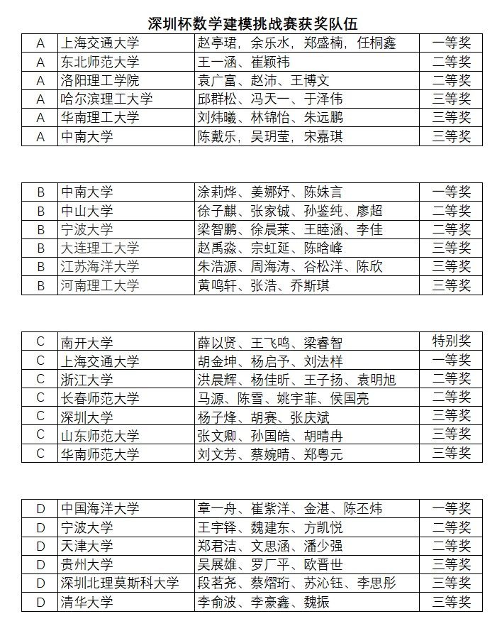 参赛团队最终荣获“深圳杯”数学建模挑战赛二等奖2项。祝贺所有获奖的同学们!