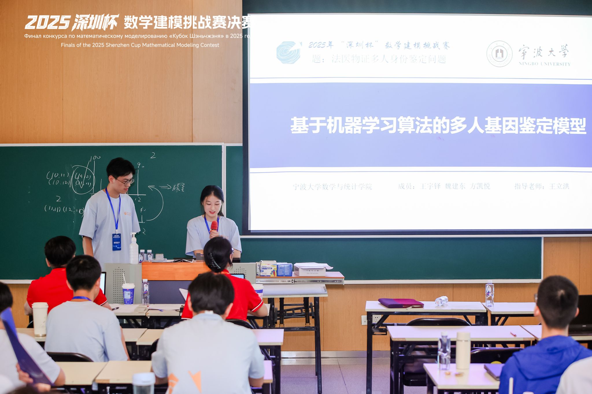 王立洪老师带队,其中B题参赛队伍由机械学院梁智鹏、王睦涵、徐晨莱和商学院李佳同学组成;D题参赛队伍由数学学院魏建东、王宇铎、方凯悦组成。在决赛答辩中,两支队伍展现了出色的数学建模能力和创新思维,得到评委高度认可。