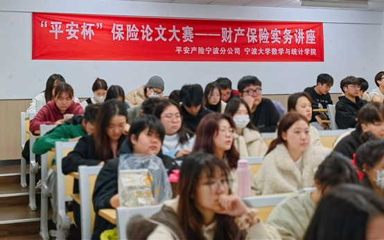 联合平安产险宁波分公司在四号教学楼209教室举行了“平安杯”保险论文大赛——财产保险实务讲座。本次讲座由包括平安产险宁波分公司人事经理齐鸣、车险产品经理杨宗超、个人非车部门经理杨云钥、数据项目组经理傅娇儿在内的6位业内专家组成,旨在为“平安杯”保险论文大赛参赛的队员进行答疑解惑,同时让同学们对保险实务有更深入的认识。