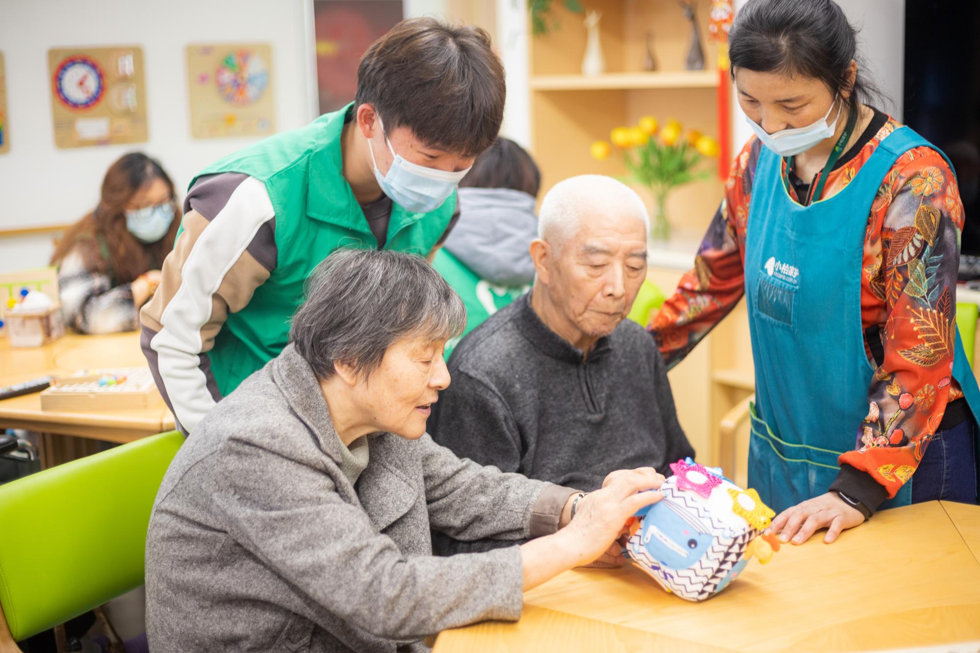 的志愿者们和宁波市镇安小学的小朋友们共同来到位于镇海区的小柏长者照护之家,开展雷锋月“智慧助老”志愿服务活动。