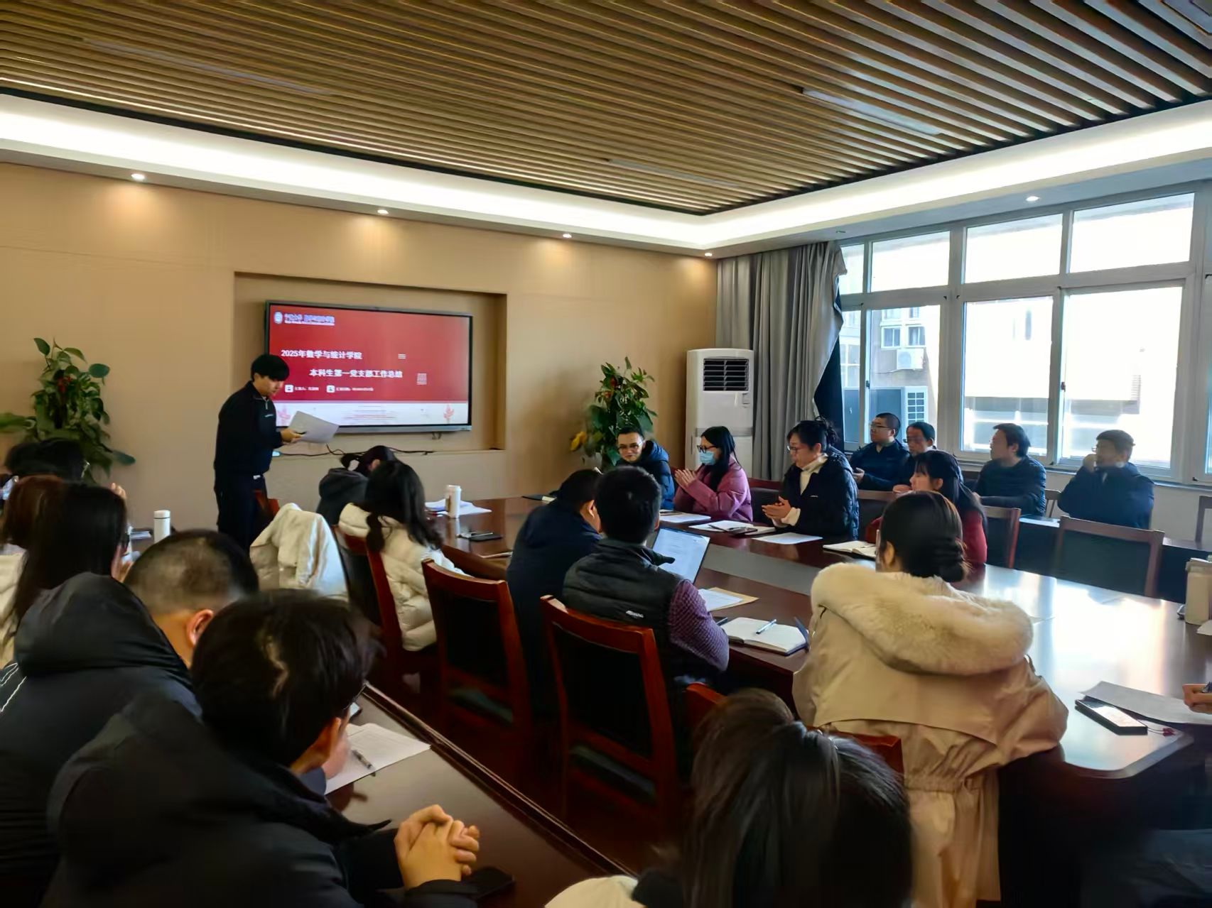 2026年1月12日,数学与统计学院党委在218党建之家召开2025年度党支部书记述职评议大会。会议由学院党委委员全晶晶主持,学院党委班子成员、各党支部书记、副书记及支委参加会议。